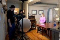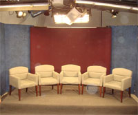 Our studio is available for rent raw or equipped, with or without our control room and with or without crew*. The facility houses an approx. 21 x14 ft. studio with several sets, 3 JVC 790U Pro HD cameras, Vinten 250 pedestals, Autoscript teleprompter, lighting grid that includes, projection screen, 5 Flo-Co Studio 4 light box panels, 3 Fresnel 2kw 8", 2 Fresnel 2kw 6", 12 Stage Lights 750w, 1 Colortran 2kw, 1 Berkey Beam light, 1 Berkey Colortran light, Chroma-key available.